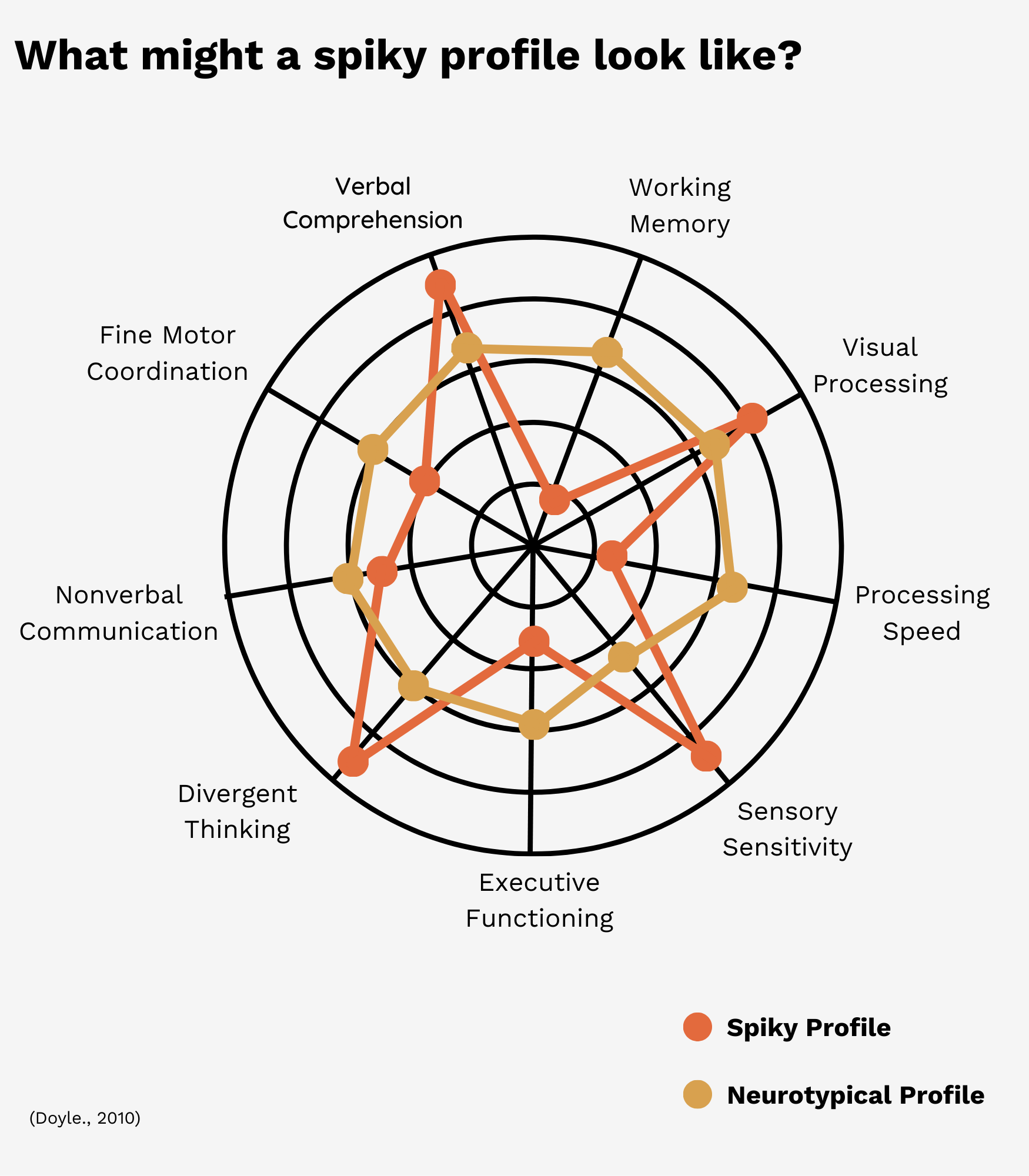 Traditional systems don’t always know what to do with a spiky profile. They may offer support for the struggle but overlook the strength. Or celebrate the talent but miss the difficulty.